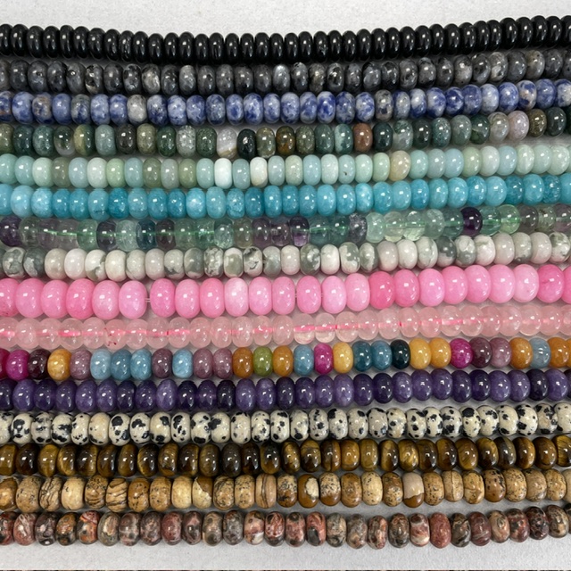 Rondelles are a popular shape in gemstone jewellery. We now have over 15 different stones to choose from.