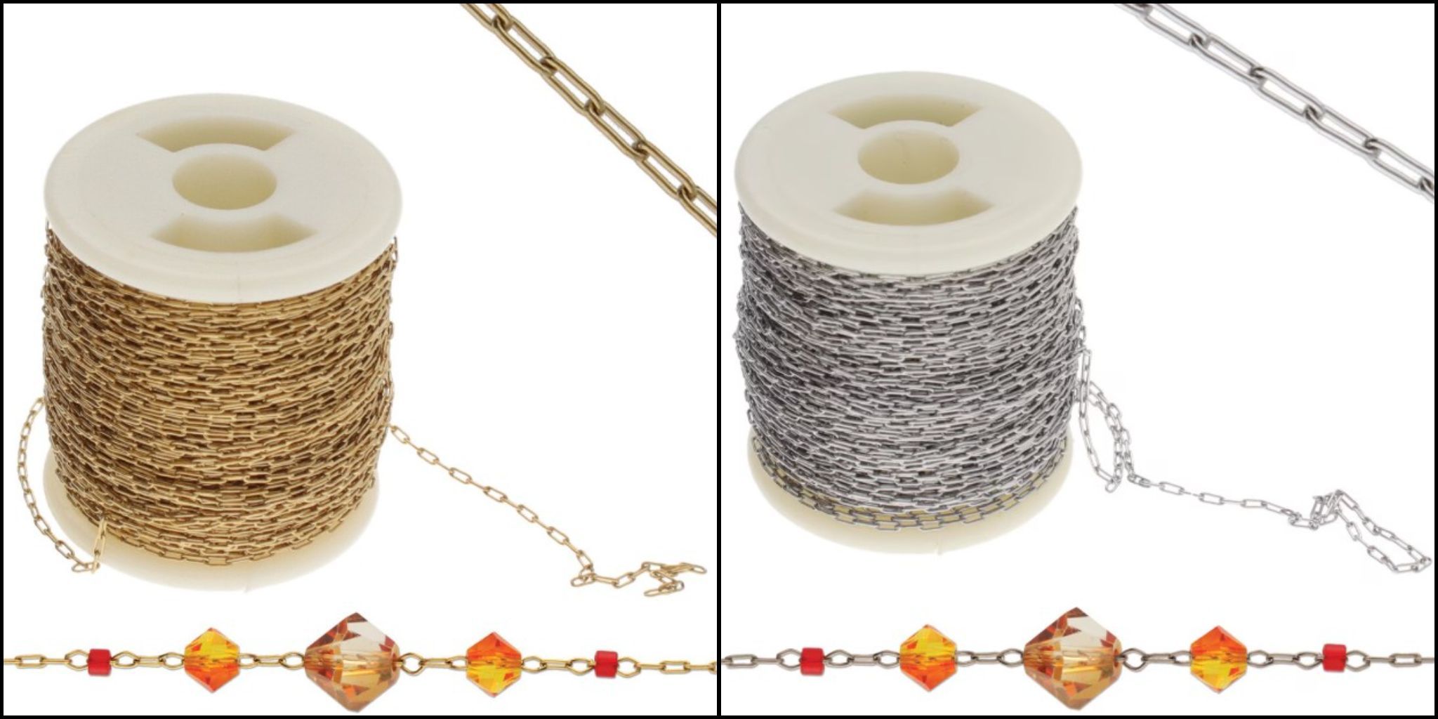 Sold on 8m spools - available in stainless steel or gold plated steel.