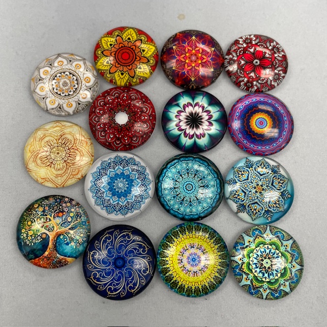 A new line of glass cabochons has arrived. There are 14 colours of Mandala, 1 tree of life cab and new colours of 37mm acrylic hearts. Sold in pairs, these colourful beauties will add a little something extra to your beaded designs.