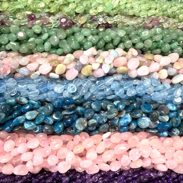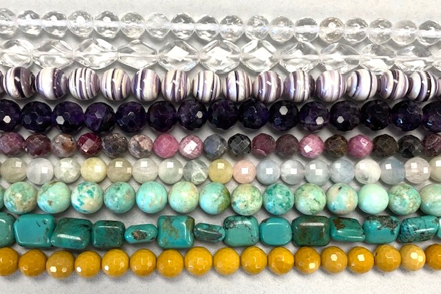 Clear quartz, amethyst, wampum, rubies, morganite, turquoise and mookaite. A colour for every palette.
