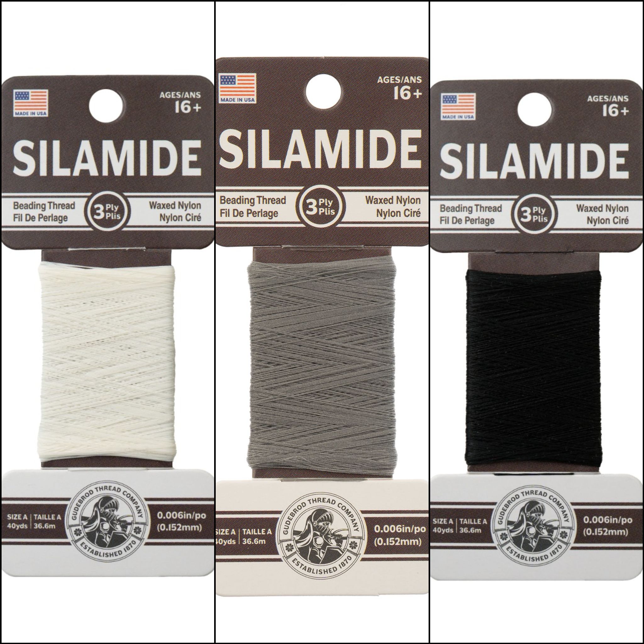 Silamide - a waxed nylon thread, is a strong, pre-waxed beading thread favoured by jewellery makers for its durability and ease of use. Its smooth, waxed surface allows it to glide effortlessly through beads and fabrics, reducing tangling and fraying during intricate designs. Ideal for bead embroidery, loom work, and general stitching.